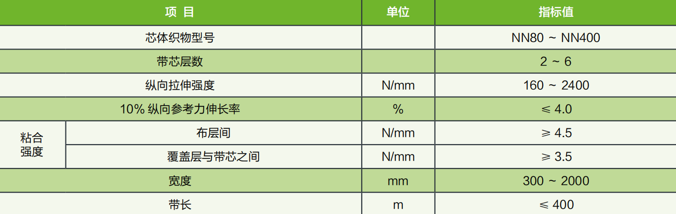 1、 以經(jīng)、緯向錦綸(尼龍)帆布作為骨架層,帶體具有良好的成槽性。